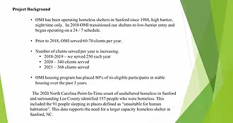 Outreach Mission, Inc. provides safe shelter, warm meals, and supportive services to individuals experiencing homelessness in Sanford and Lee County.